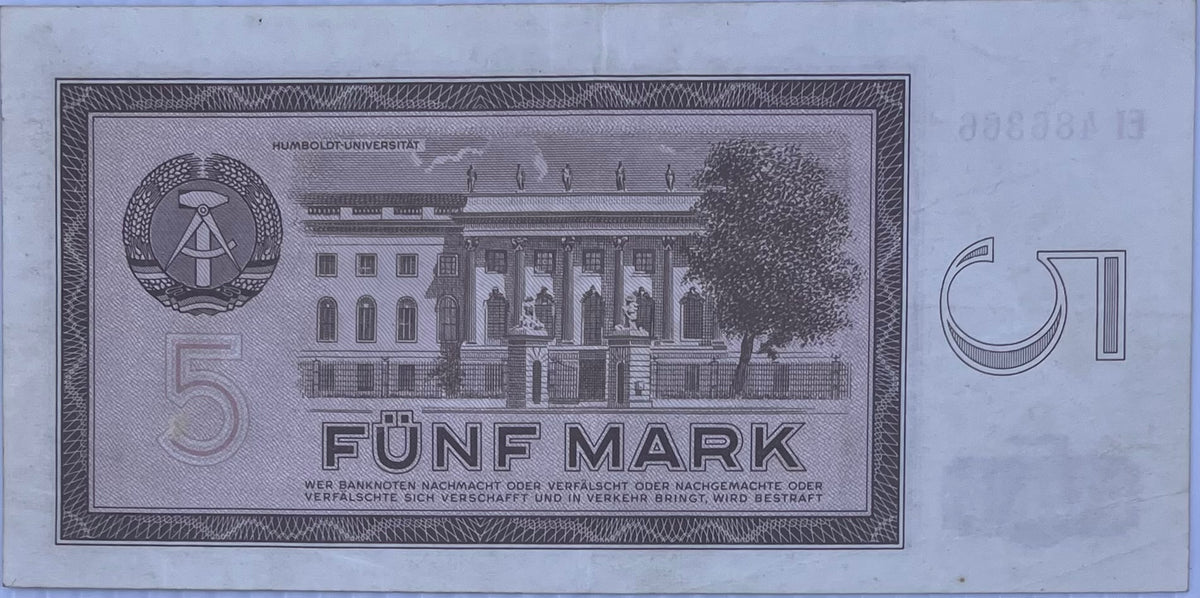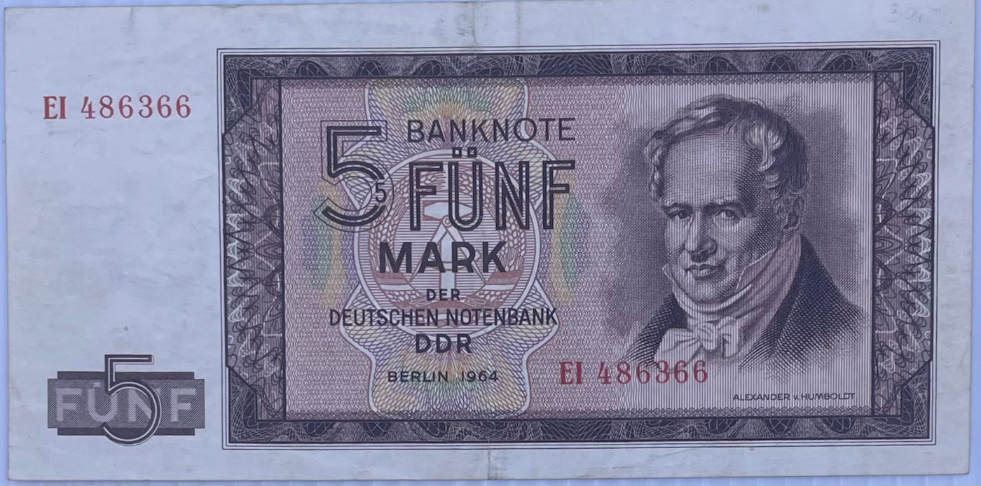 1964 Germany DDR 5 Mark P-22 Used World Banknote