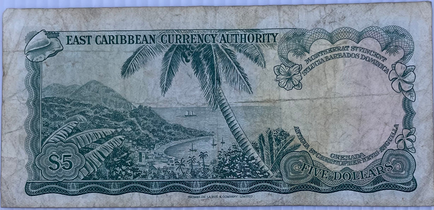 1965 East Caribbean States $5 Dollars P-14e QEII Circulated World Banknote