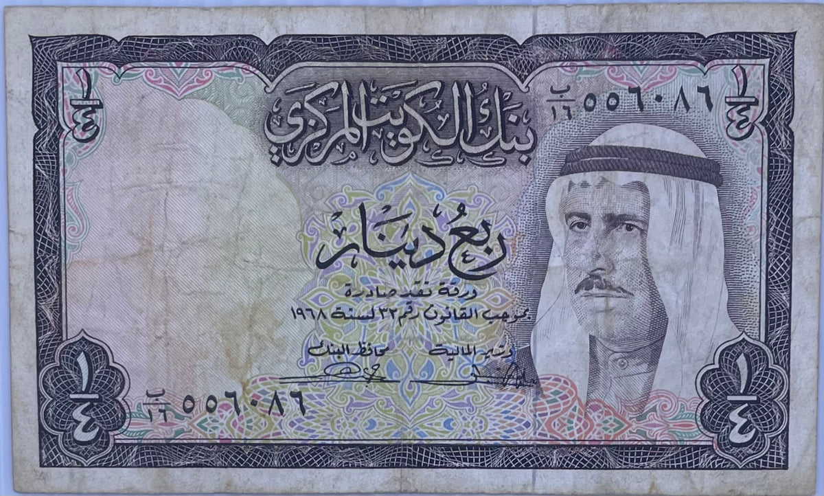 1968 Kuwait 1/4 Dinar P-6 Used World Banknote