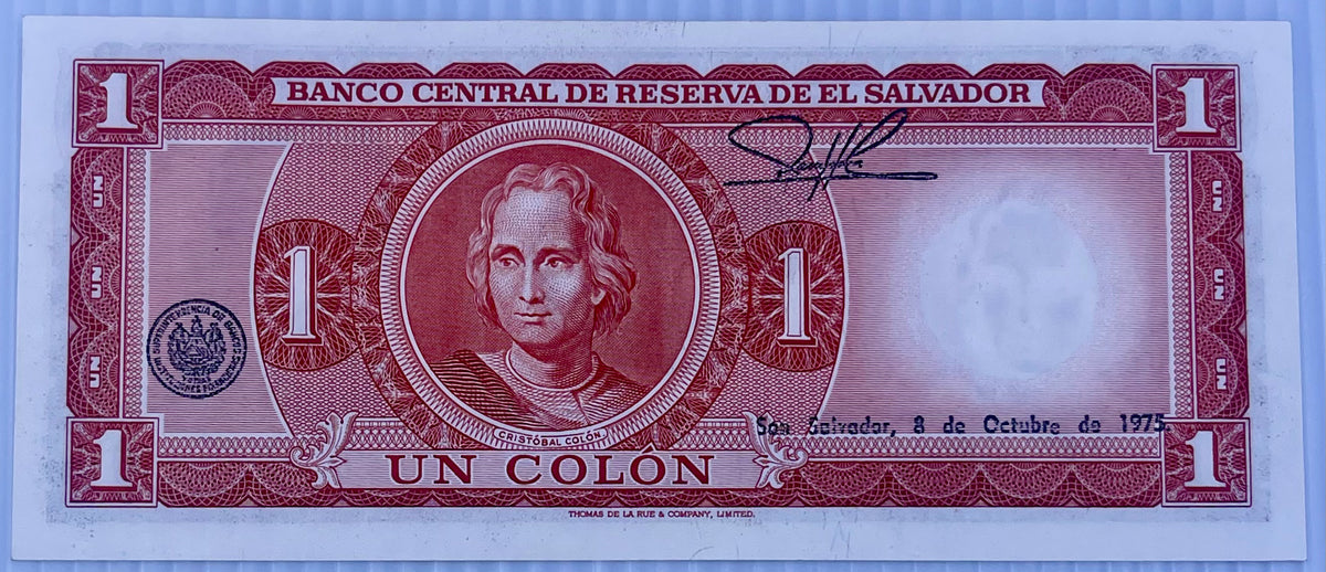 El Salvador 1975 1 Colon P-115 AU World Banknote