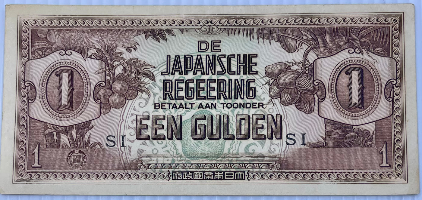 Netherland Indies 1942 1 Gulden P-123 WW2 Japanese Occupation Used World Banknote From Lot