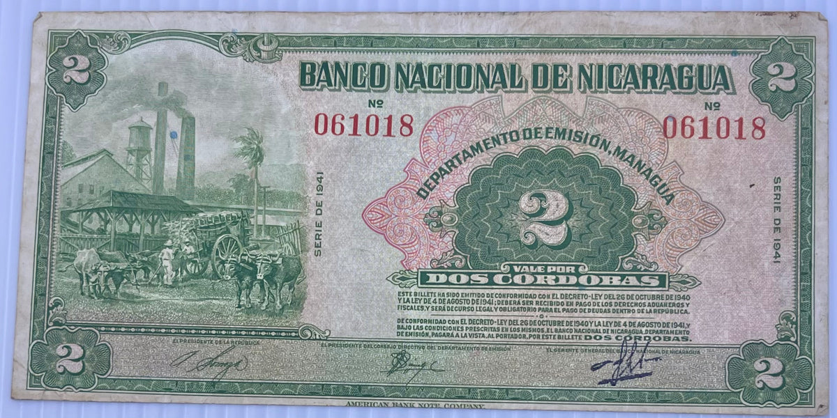 Nicaragua 1941 2 Cordobas P-92 Used World Banknote Currency