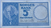 Norway 1959 5 Kroner P-30e Used World Banknote