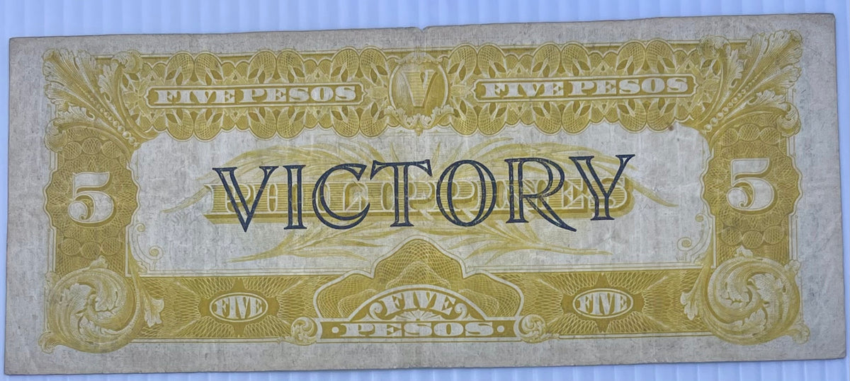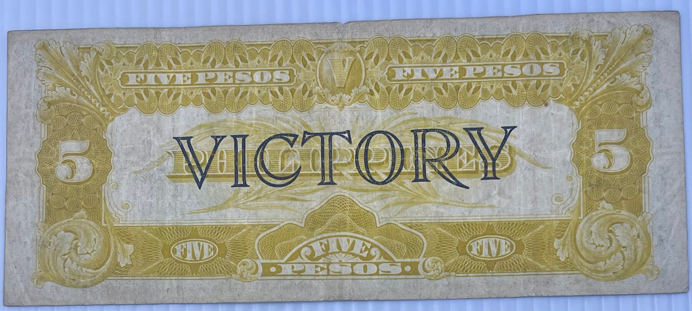 Philippines 1944 5 Pesos P-96 WW2 Victory Note Used World Banknote