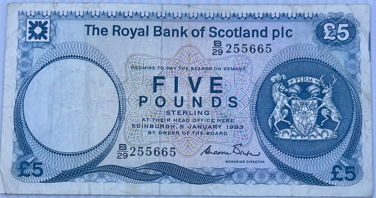 Scotland 1983 5 Pounds P-342 Used World Banknote