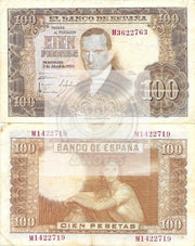 4. **Design Details:** Explore the design features of the banknote, including artwork, portraits, symbols, or scenes that reflect the cultural and historical aspects of Spain during that period.