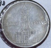 1934 D 5 Mark German WW2 90% SILVER Garrisonkirche W/D 3rd Reich Coin