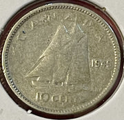 1949 Canada King George VI 10 Cents 2.33g 800 Silver Coin KM 43