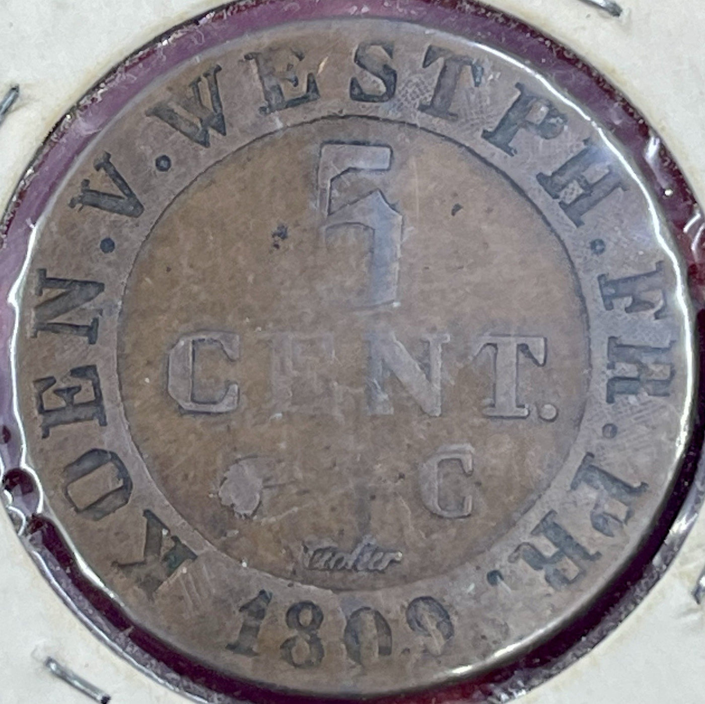 The product is a circulated 1809 5 Centimes coin from the Kingdom of Westphalia, minted in Cassel. The coin is...