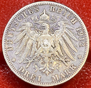 πŸ‡©πŸ‡ͺ Germany Prussia 3 mark 1912 "A" Silver Coin 0.900 KM-522 1891-1912 J#102