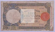 1943 Italy 50 Lire P66, Used World Currency Banknote