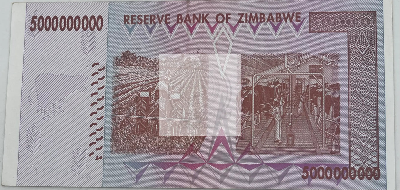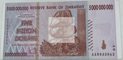 - **Historic Significance:** Issued in 2008 during a period of extreme hyperinflation in Zimbabwe, this 5 Billion Dollars banknote is a symbol of one of the most dramatic economic events in modern history. It represents the struggles and challenges faced by the Zimbabwean economy during a time of financial instability.