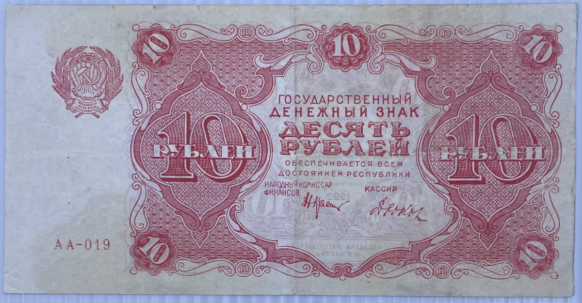 1922 Russia 10 Rubles P-130 Dyukov Signature Circulated World Banknote