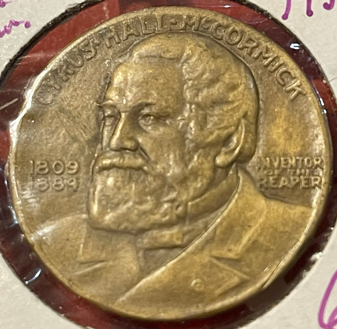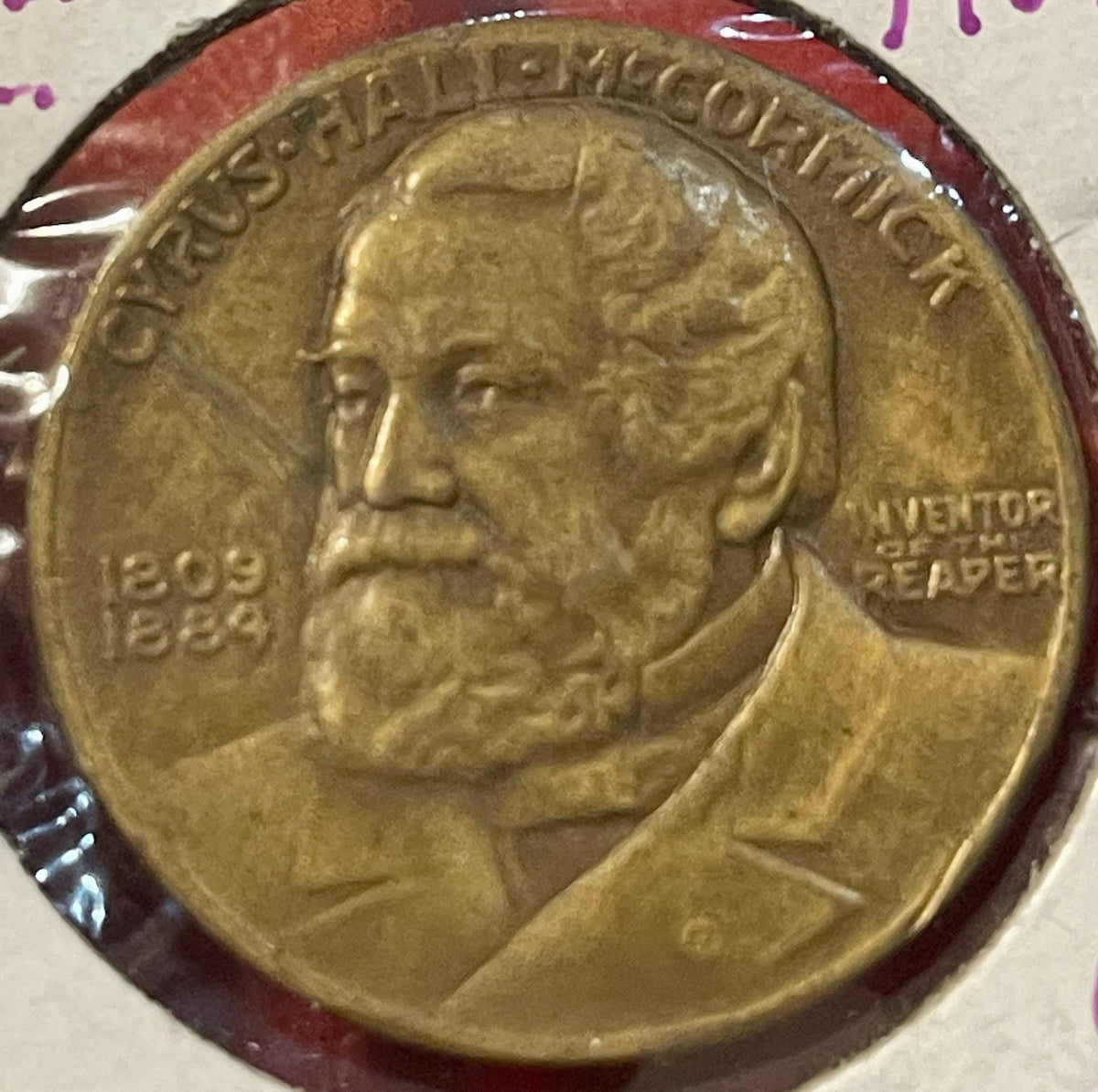 The 1931 Cyrus Hall McCormick Centennial Of The Reaper Bronze Medal TC-105818 is a commemorative medal made of bronze. This medal celebrates the 100th anniversary of the reaper, a revolutionary farming tool invented by Cyrus Hall McCormick. The design and craftsmanship of the medal showcase the significance of this historical event and the impact it had on agriculture and farming practices. This collectible item serves as a reminder of the innovations and contributions made by Cyrus Hall McCormick to the field of agriculture.