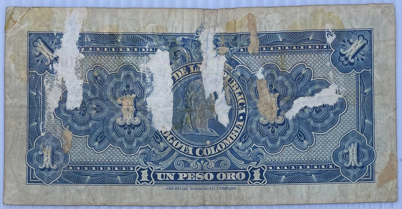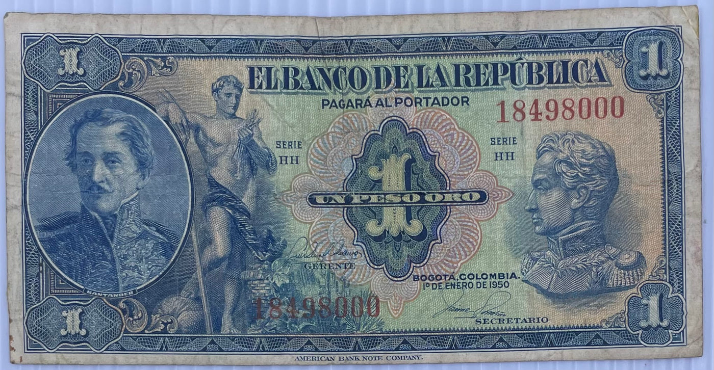 1950 Columbia 1 Peso P-380 Circulated World Banknote