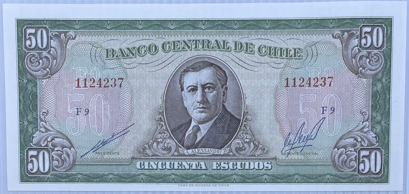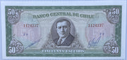 1962 Chili 50 Escudos P-109 UNC World Banknote