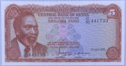 1978 Kenya 5 Shillings P-15 UNC World Banknote This image shows a vintage 5 Kenyan shilling banknote, specifically the P.15...