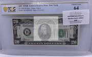 Discover a piece of American financial history with this remarkable $20 1928B Federal Reserve Note from New York, Fr. 2056-B, featuring the distinctive "LIGHT GREEN SEAL" and certified by PCGS as 64 Choice UNC (Uncirculated).