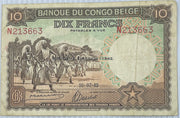 Belgian Congo 1942 10 Francs P-14 Used World Banknote