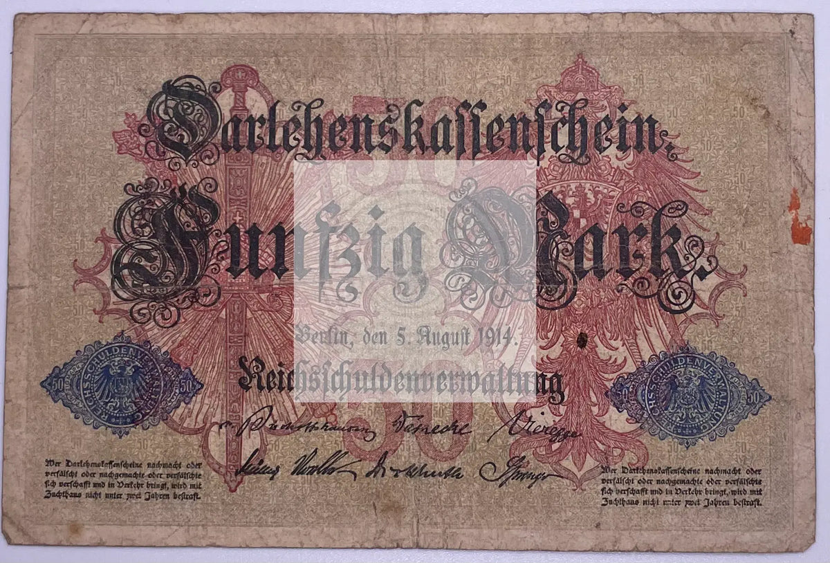 The Germany 50 Mark banknote from 1914 is a fascinating relic from the early 20th century, reflecting a pivotal period in German history. Here's an overview of this historic banknote: