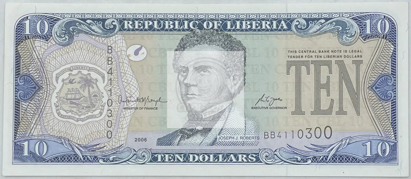 Liberia 10 Dollars, 2006 P-27c Joseph Jenkins Roberts Rubber Plantation Unc