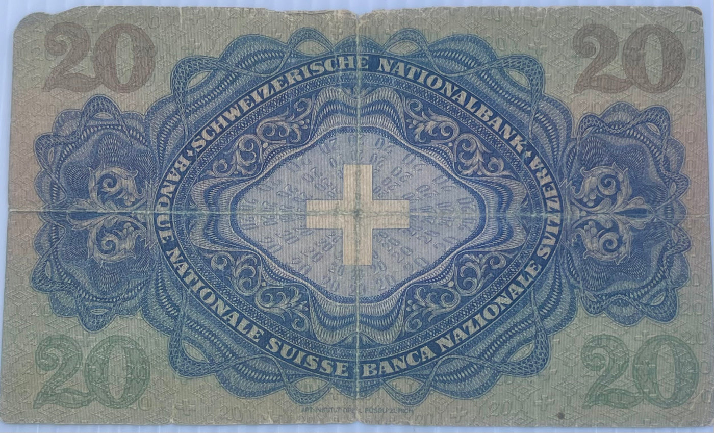 Switzerland 1944 20 Francs P-39 Used World Banknote